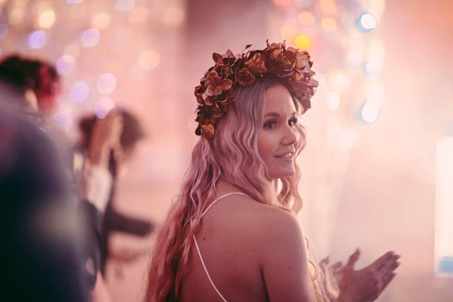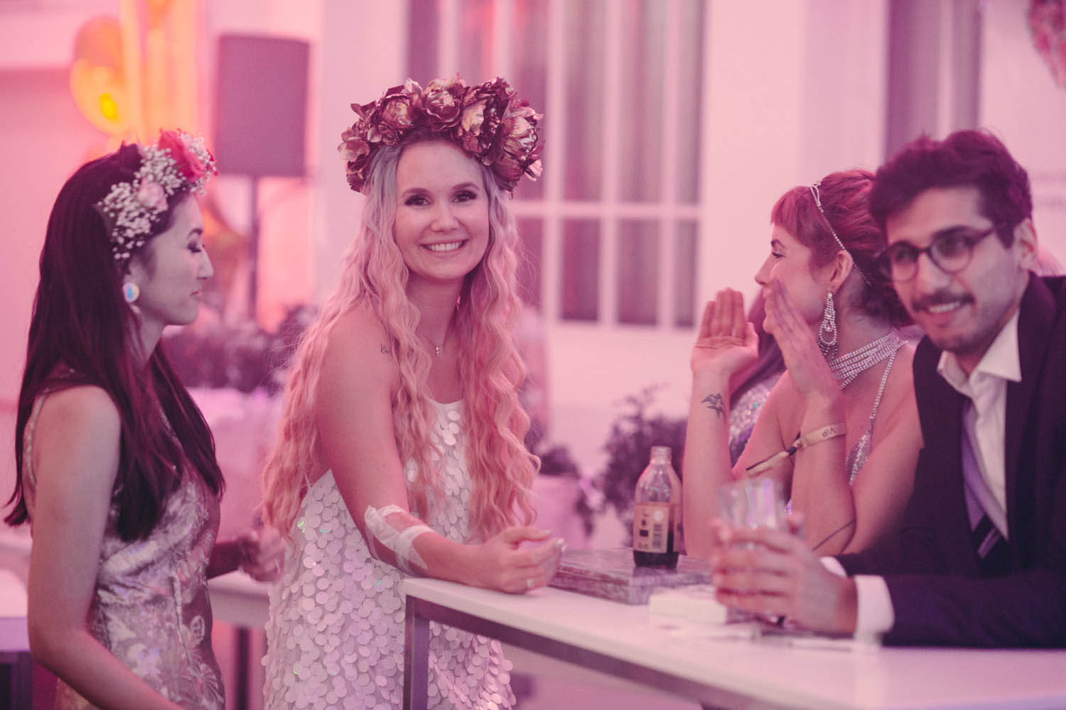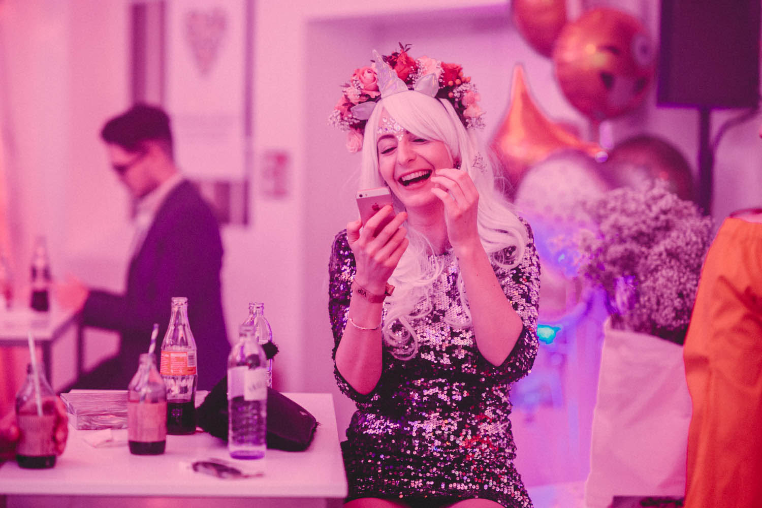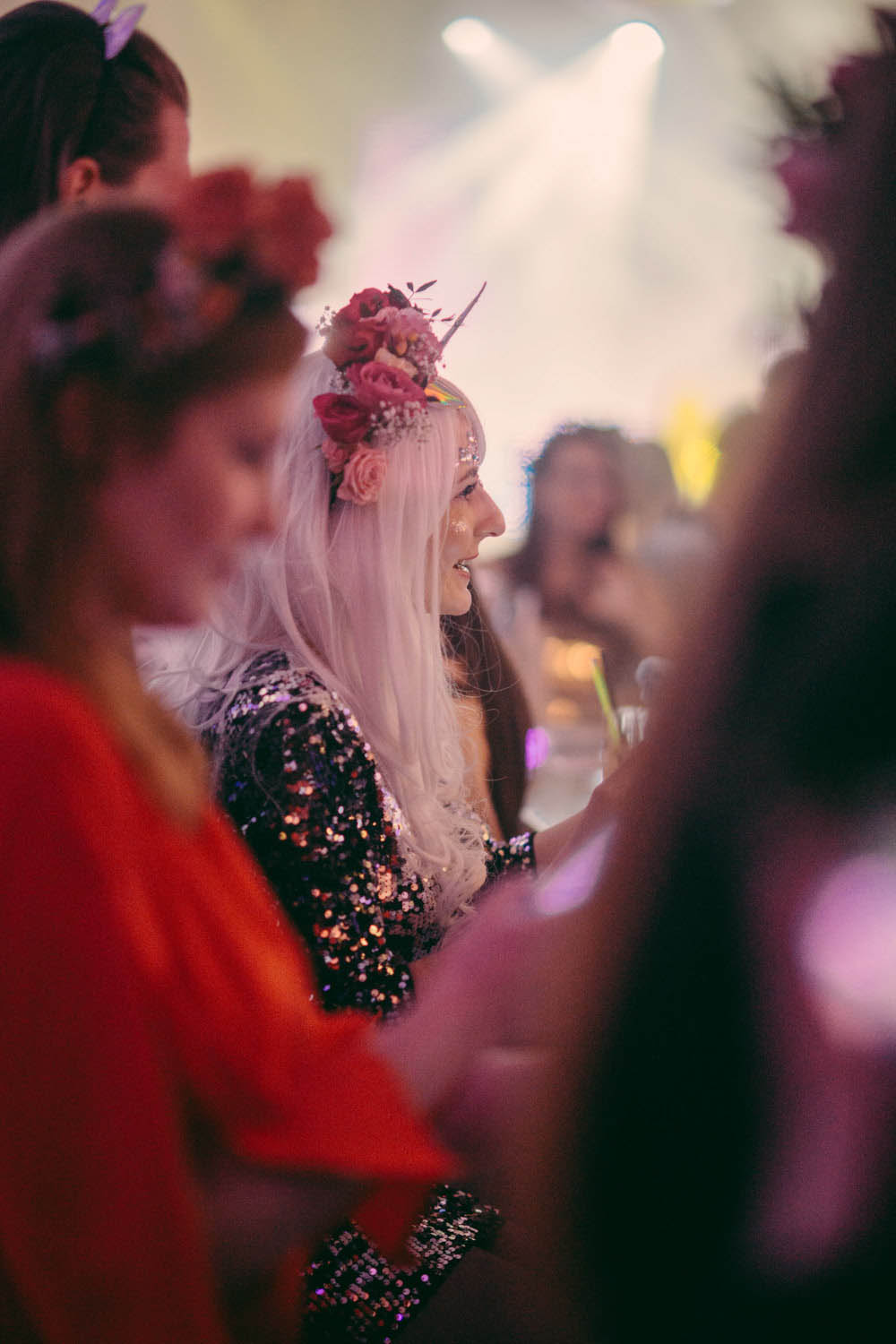 A wedding day with a very special topic: “unicorn meets rainbows meets star wars meets glitter craziness”. We designed a golden flowercrown for the bride and did our real-flower workshop for the guests! The bigger, the better!