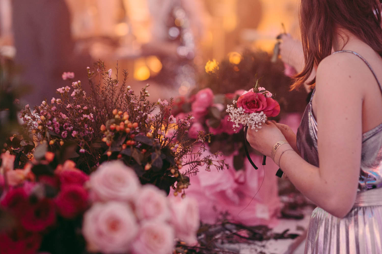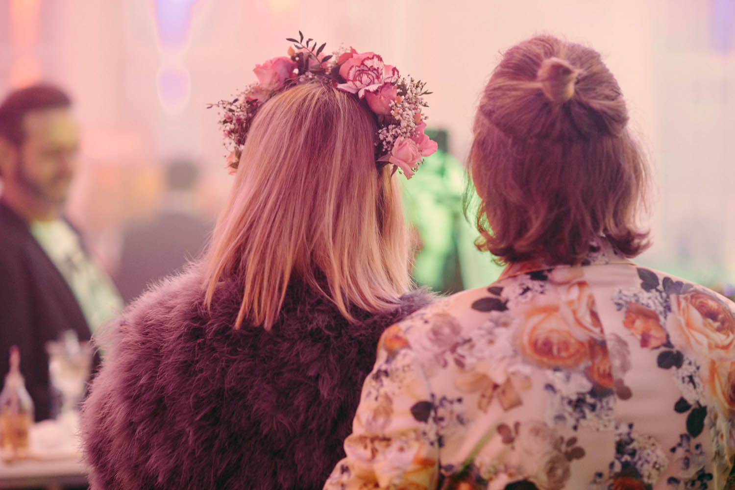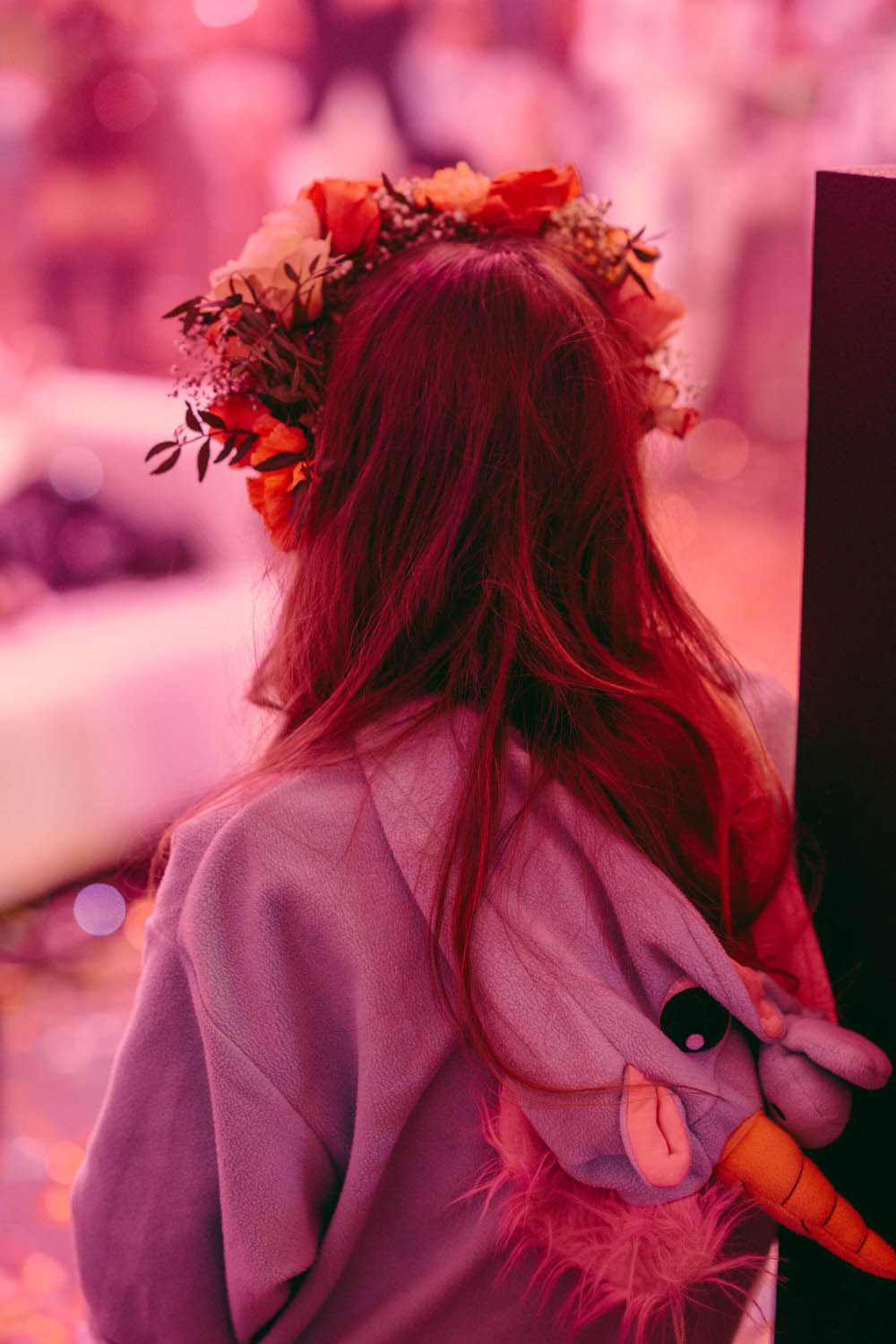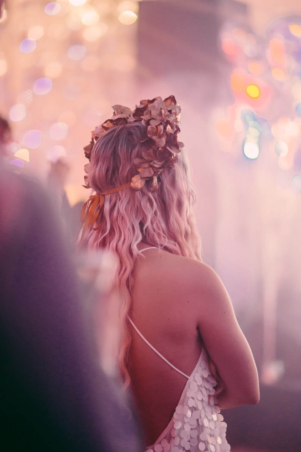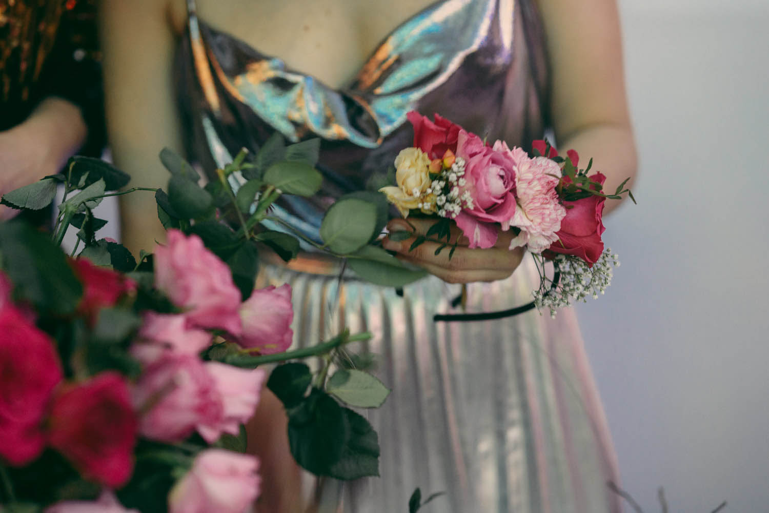 A wedding day with a very special topic: “unicorn meets rainbows meets star wars meets glitter craziness”. We designed a golden flowercrown for the bride and did our real-flower workshop for the guests! The bigger, the better!