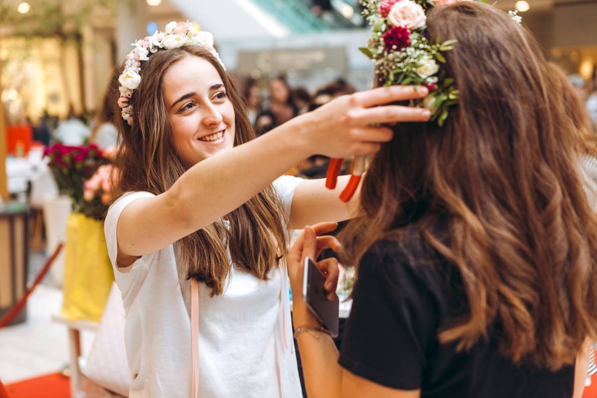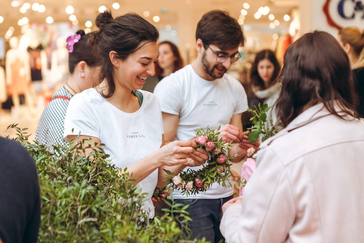 It’s the biggest Austrian shopping day of the year – it’s WOMAN DAY! This year, we were asked to do some customer entertainment at Plaza SCS Vienna. To flower up the SCS customers for one day, 12.000 Flowers were transformed into magic flowercrowns by our Pavillon Events team.